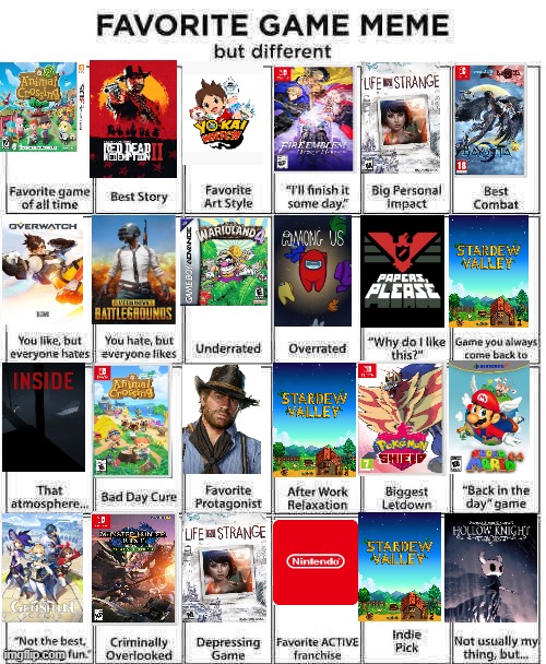 If you find this site serviceableness, please support us by sharing this posts to your preference social media accounts like Facebook, Instagram and so on or you can also Download this blog page with the title Favorite Game Meme But Different Maker by using Ctrl + D for gadgets a laptop with a Windows operating system or Command + D for laptops with an Apple operating system. If you use a smartphone, you can also use the drawer menu of the browser you are using. Whether it's a Windows, Mac, iOS or Android operating system, you will still be able to bookmark this page.